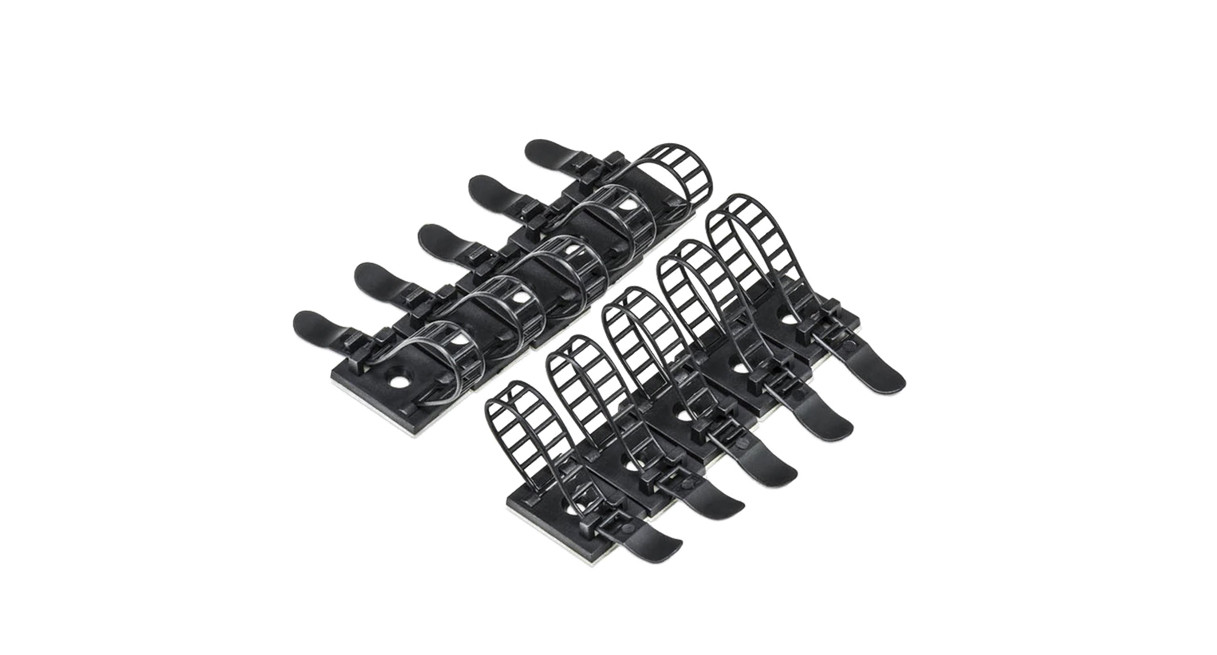Arrange and tuck cords away with adjustable cable ties. Self-adhesive and can stick to the underside of a desk or its metal framing.