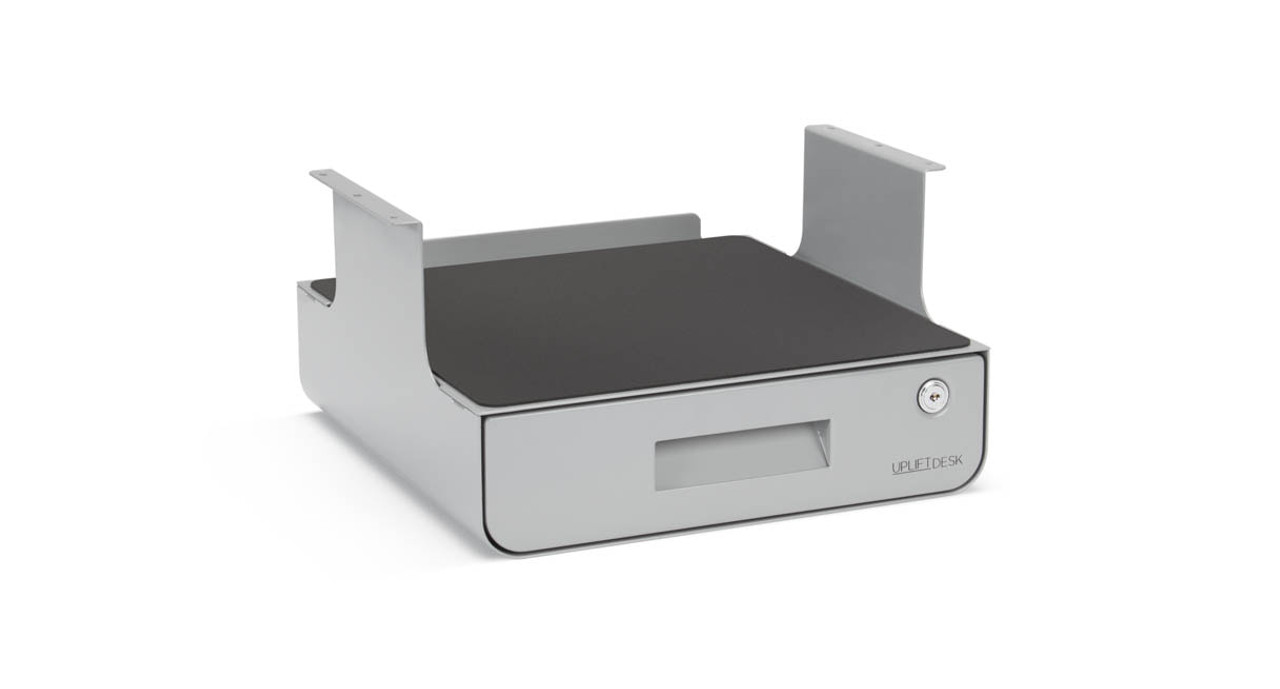 Premium dual-level storage combines locking drawer with integrated shelf space for a convenient solution. Built-in pad and guard prevent items from shifting.