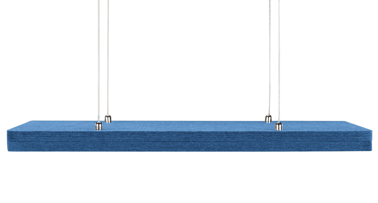 1.2-inch thick ceiling-hung acoustic panels with optimized noise absorption on all sides. Add dimension and decrease echo in the workplace.